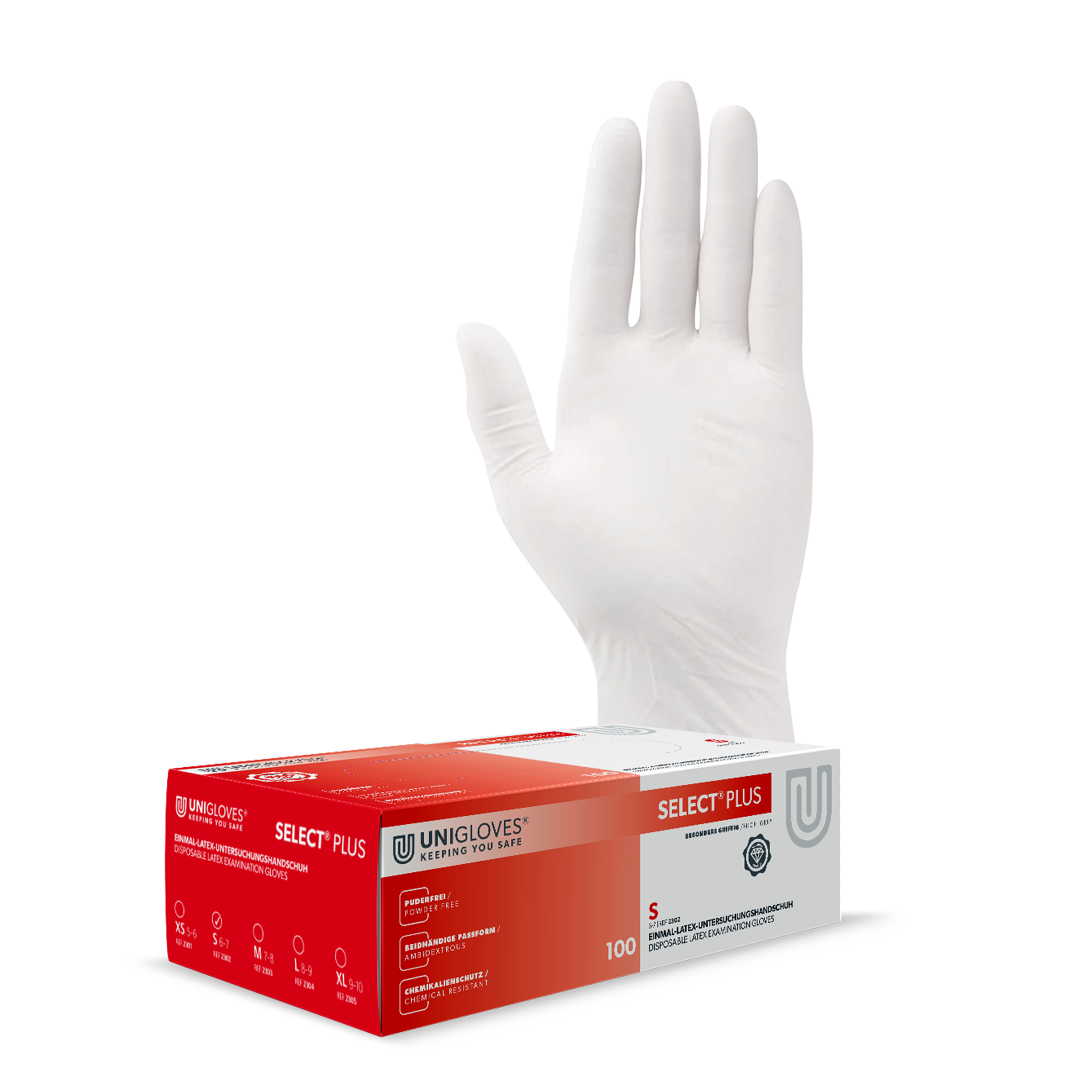 Unigloves Select Plus Latexhandschuhe 6-7 Small 100 Stück/Box